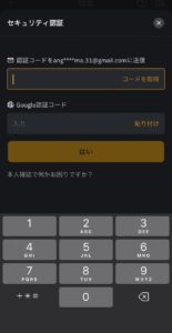 登録されているメールアドレスに認証コードが届きます。