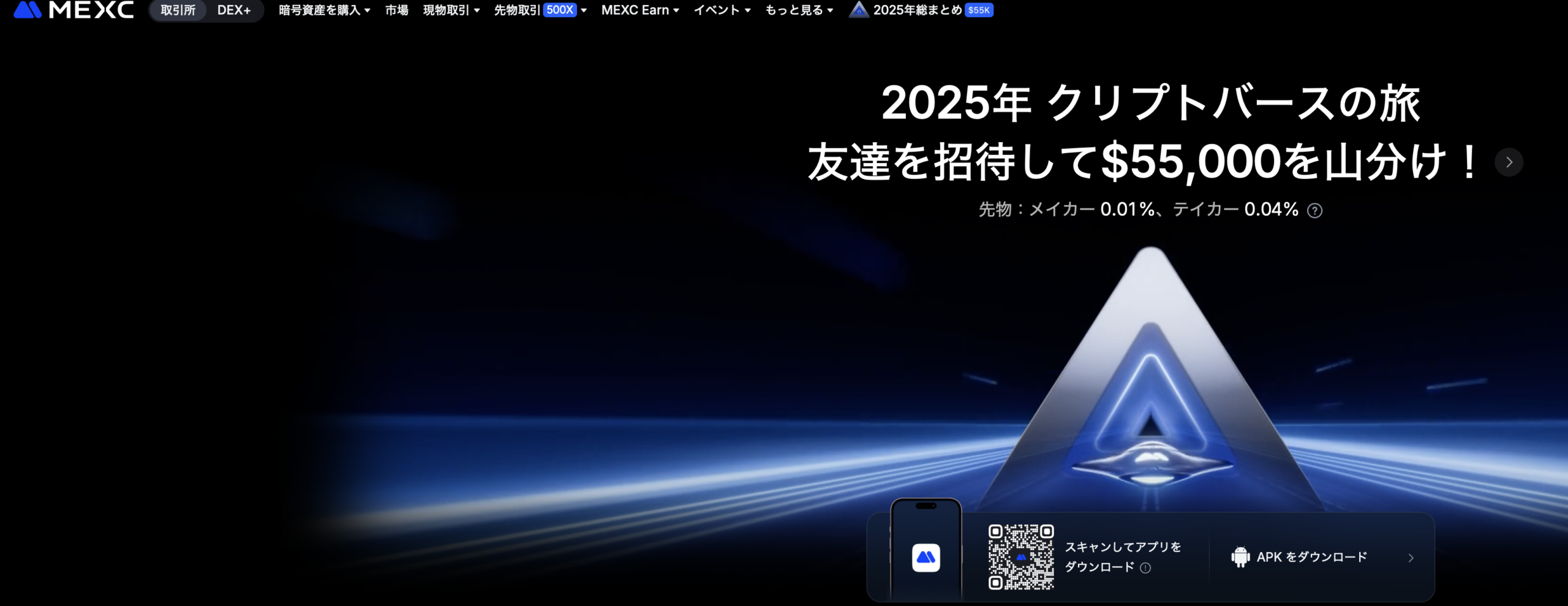 MEXCトップページ(ログイン後)