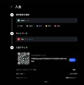 • USDT入金アドレス