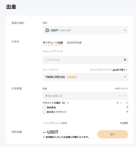 2. BybitでUSDT(TRC20)を出金